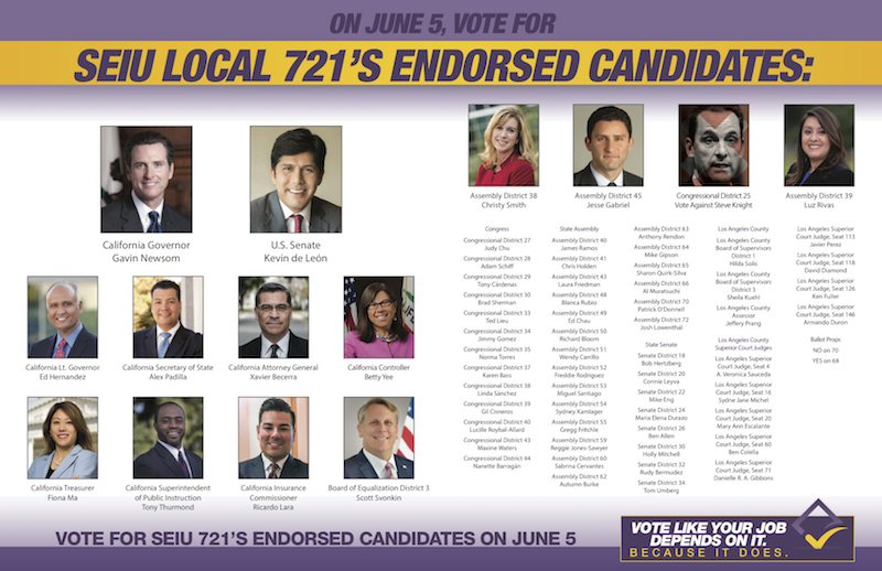 Over the past months, SEIU members across the state have conducted a transparent, democratic process, interviewing dozens of candidates for statewide offices. SEIU 721 members have been a part of that process, and have also endorsed candidates for local offices who support working families and the communities we serve.
