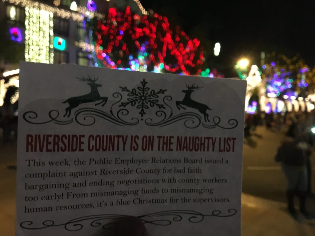 Luckily, KPMG and the Riverside County Board of Supervisors that enables them can still be stopped! Last Friday, SEIU 721 members took to the Festival of Lights to rally the community to our cause and let them know just what the board and KPMG are up to.