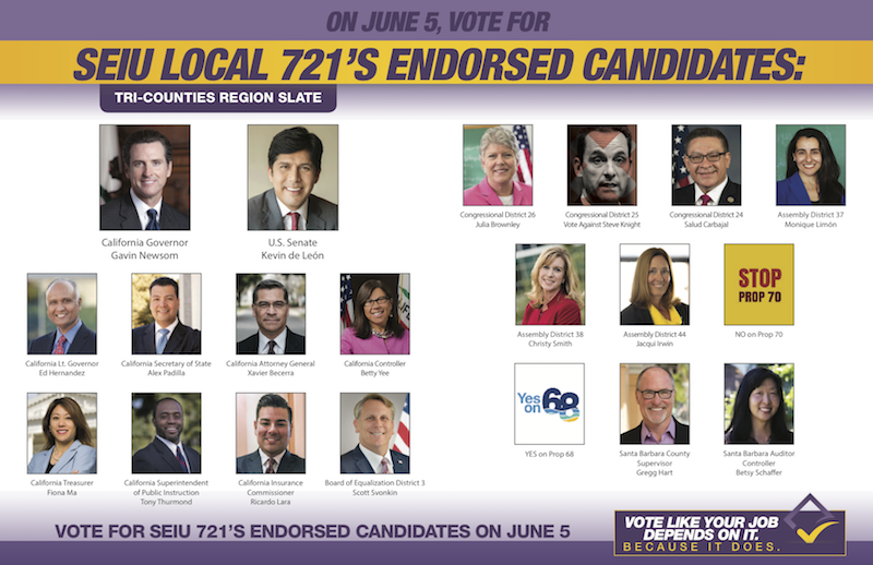 Over the past months, SEIU members across the state have conducted a transparent, democratic process, interviewing dozens of candidates for statewide offices. SEIU 721 members have been a part of that process, and have also endorsed candidates for local offices who support working families and the communities we serve.