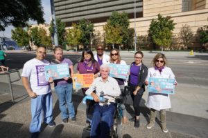 Klien was also joined by Rev. Cue Jn-Marie and members of community groups like the Alliance of Californians for Community Empowerment, who turned out to show that nurses have the community’s full support.
