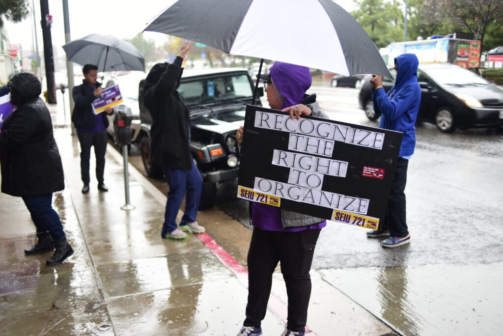 They stood in the rain on Marengo Avenue, outside of LAC + USC Medical Center, to tell you — STAY UNION STRONG on MARCH 23rd!