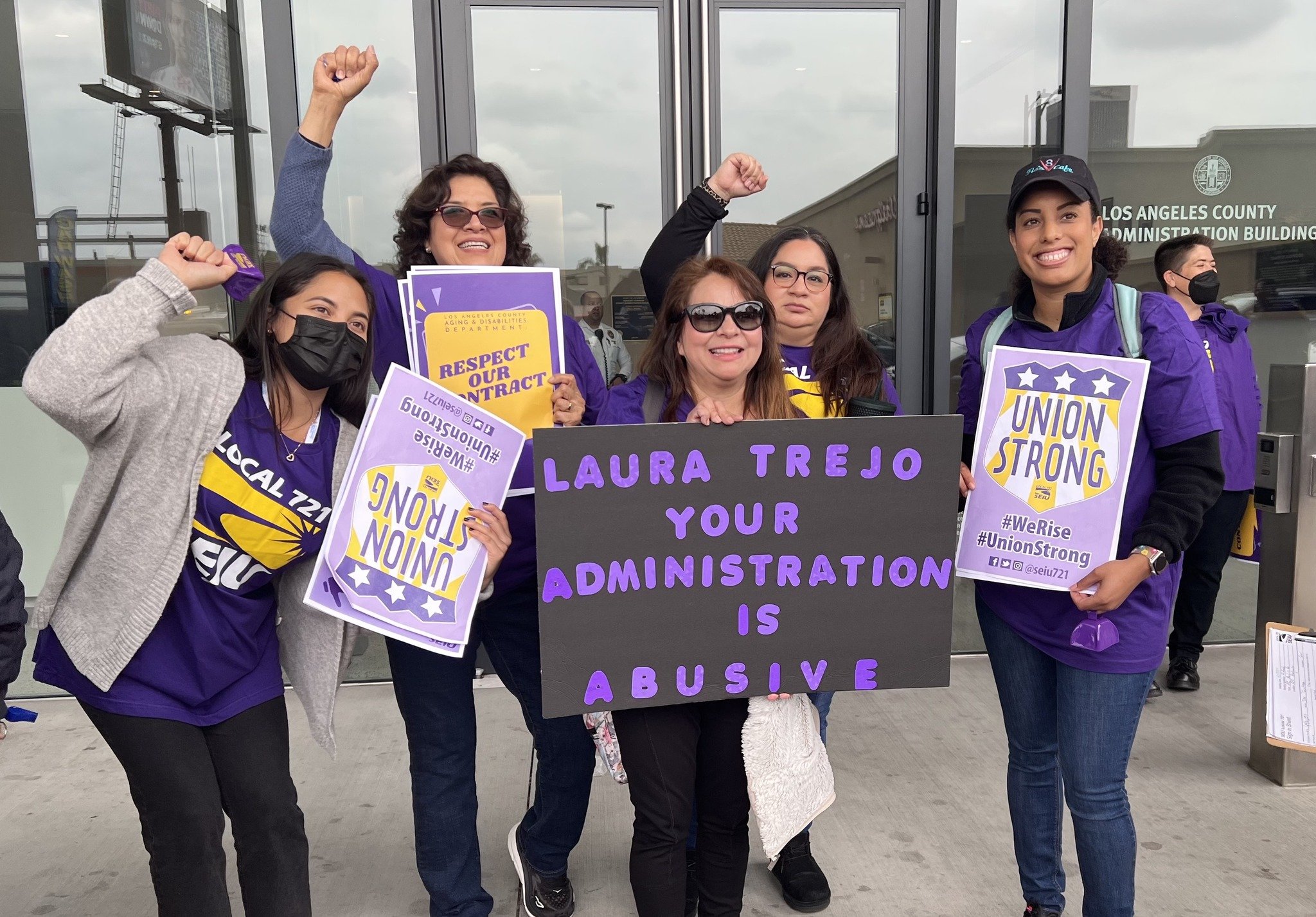 That’s why dozens of purple-clad LA County AD Department employees took to the streets of Koreatown on Wednesday, June 7th to demand management’s respect, including: