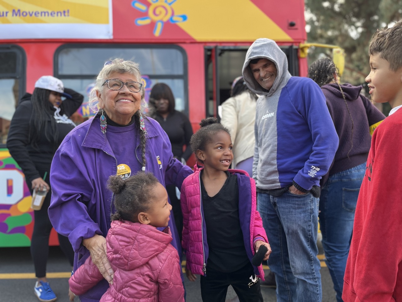 Behind the bus followed a St. John’s Mobile health clinic vehicle, and an LA City Sanitation truck — symbolizing King’s historic support for primarily African American workers who walked off the job during the Memphis Sanitation Strike in 1968.