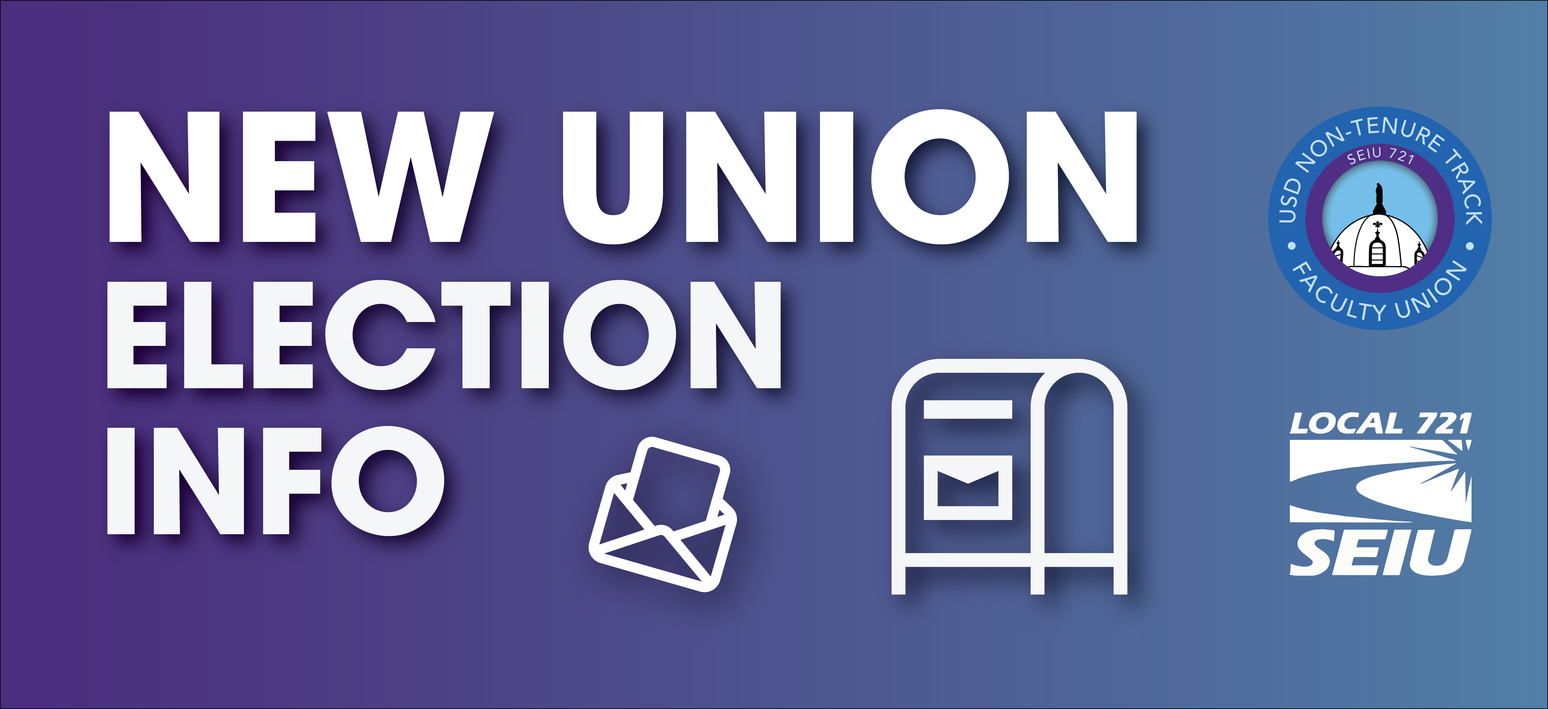 There’s no reason to wait for the fall. This is a vote-by-mail election, so whether faculty members are on campus is irrelevant. We feel USD’s rationale for a fall election is a delay tactic to suppress our vote.