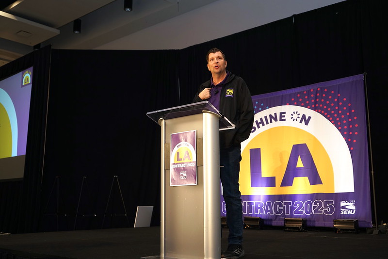 Alvarez was followed by Steve Koffroth, SEIU 721’s Director of Collective Bargaining and Research. Koffroth was the Chief Negotiator for the last City of Los Angeles contract, where members there received the largest pay increases in their history – a fact appreciated by SEIU 721 Vice President Simboa Wright, who was in attendance at the LA County 2025 Contract Bargaining Kick-Off on Saturday.