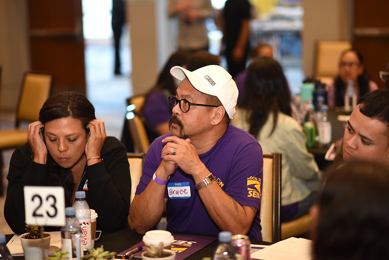 Raymond Meza took the stage again, recognizing the attendees who had run for Bargaining Team positions. Afterward, everyone participated in role playing sessions where they focused on how they would present the information they’d just learned to their co-workers back at their respective worksites – with David Green and Raymond Meza first demonstrating to everyone exactly how it could be done.