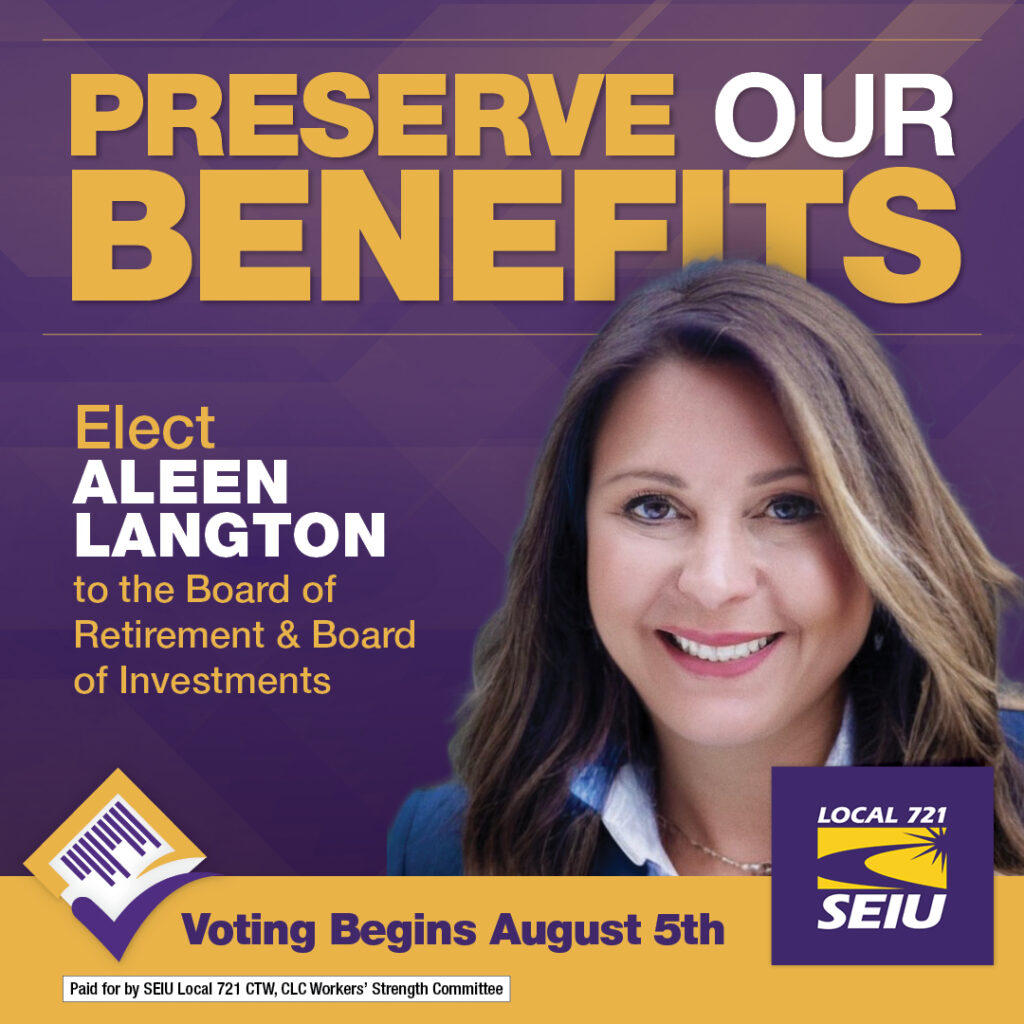 Remember to vote for Aleen Langton for both LACERA Boards starting August 5th.