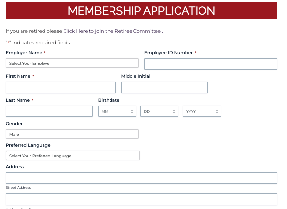 Once your username is created, you will be prompted to complete a membership application. You must complete a card and become a member in order for your vote to be counted. Again, select USC – University of Southern California for the Employer Name field and 0000 for the Employee ID Number.
