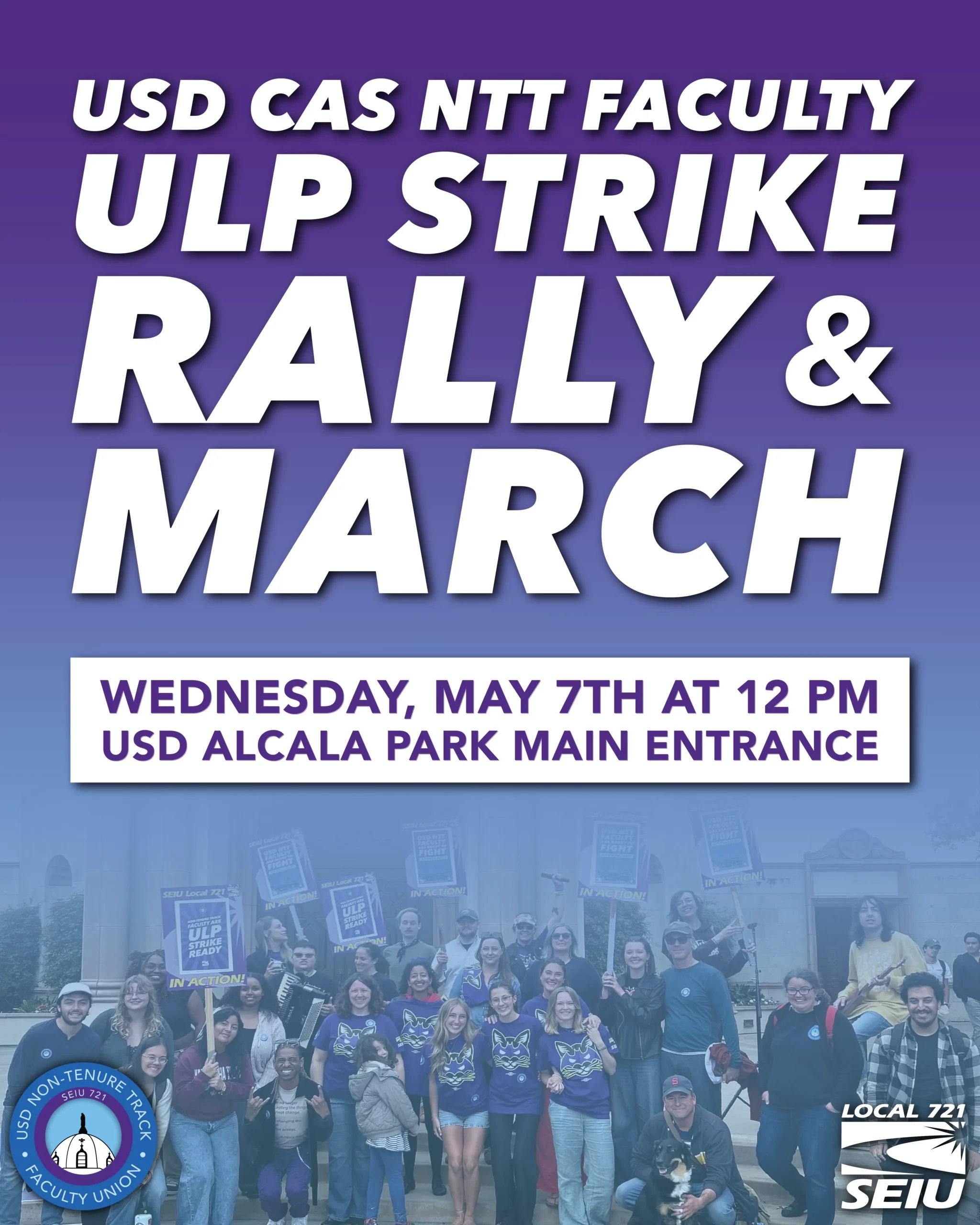 Join the ULP Strike Rally & March on May 7 at 12 PM by the Alcalá Park Main Entrance.