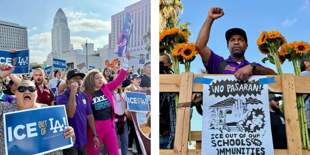 This afternoon, SEIU 721 members stood shoulder-to-shoulder with our coalition and community partners in Downtown LA to denounce these horrific raids and demand the immediate release of all those detained.