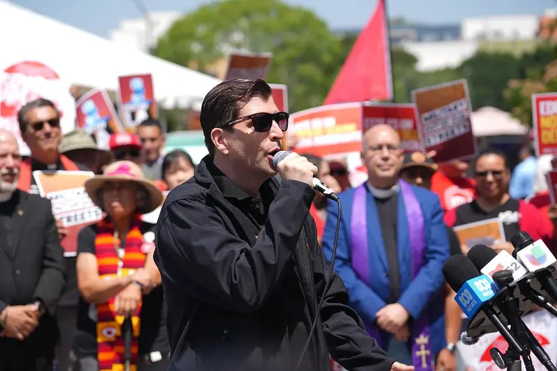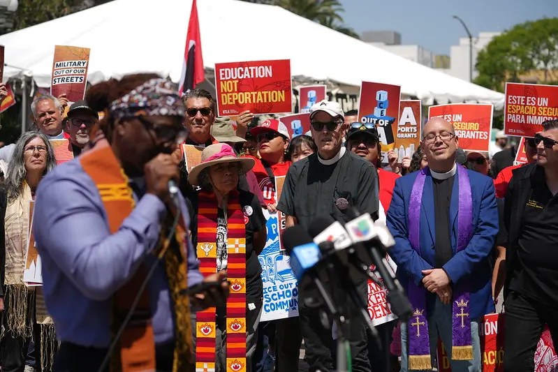 Attendees at the “Summer of Resistance” launch included workers from UTLA, UFCW 324, UFCW 770, Teamsters Local 396, the Central American Resource Center (CARECEN), the Coalition for Human Immigrant Rights of Los Angeles (CHIRLA), LA United Front, KIWA Workers for Justice and a variety of clergy members from CLUE (Clergy and Laity United for Economic justice).
