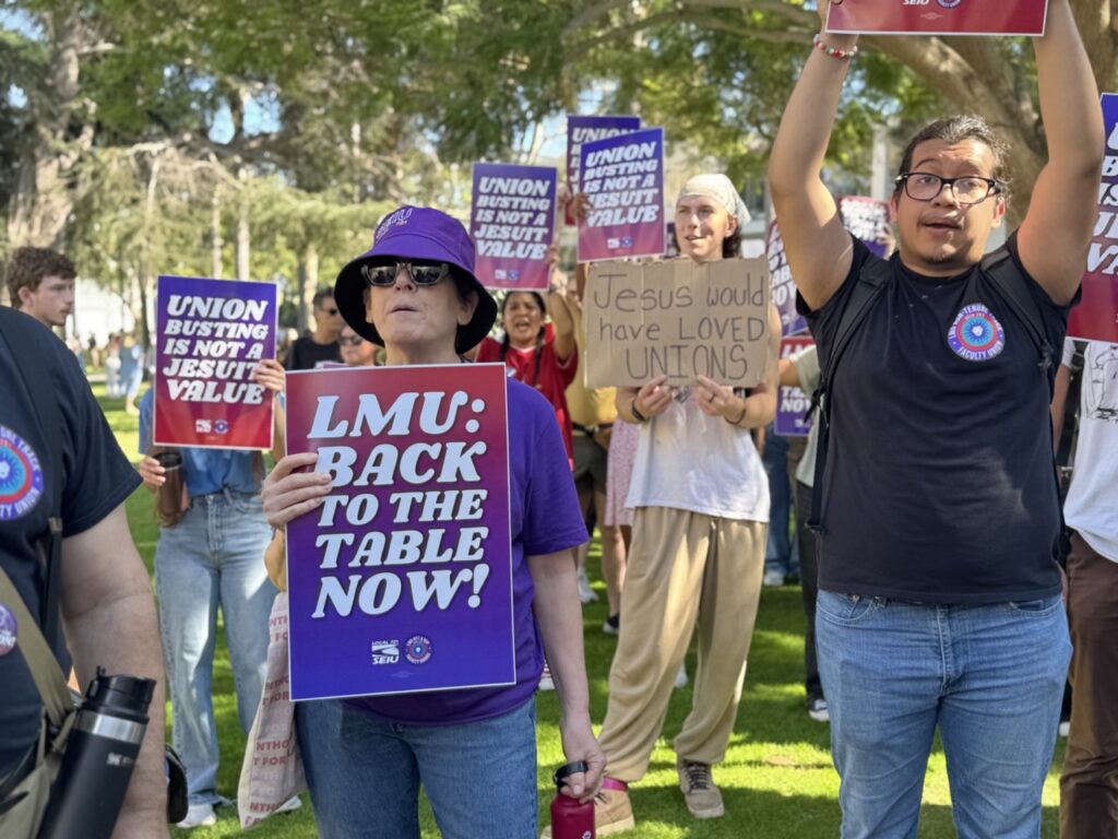 “What I would like to see is for LMU to get back to the bargaining table and do the right thing,” said Arik Greenberg, clinical assistant professor in LMU’s Department of Theological Studies, in a speech at the rally. “There’s 150 years of Catholic social teaching with unwavering support for labor unions! Do they know better!?”