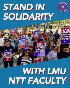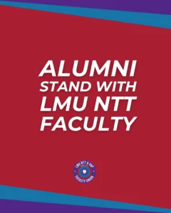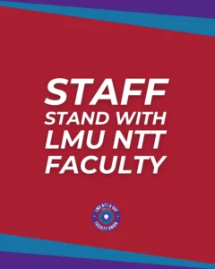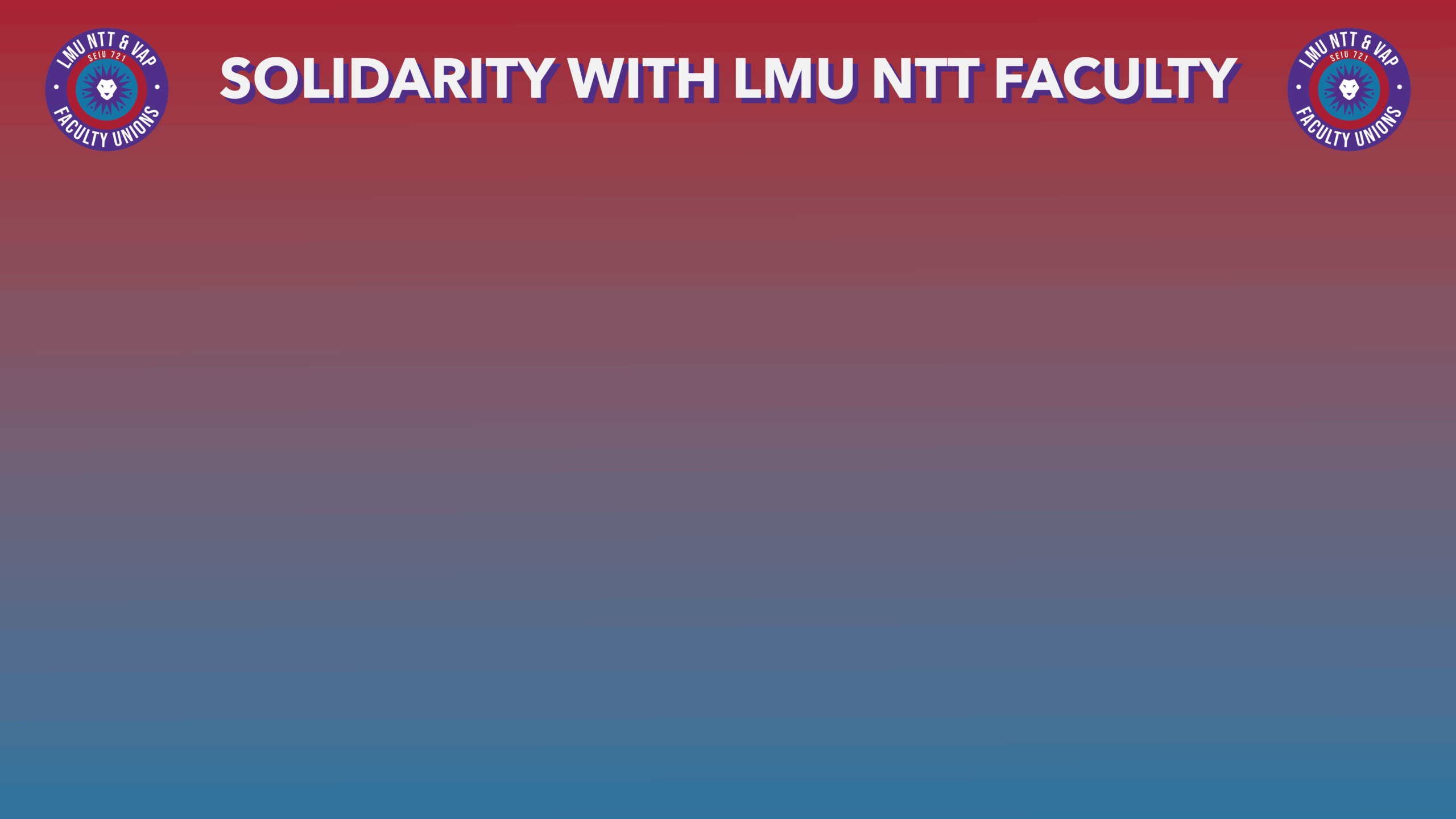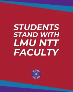 “LMU’s board and administration has lost credibility and severely damaged the reputation of the university. The only way they can set things right is by returning to the bargaining table in good faith with NTT faculty who overwhelmingly voted to form our union with SEIU 721. Only then will LMU be living up to its commitments to Catholic and Jesuit values, social justice, equity, and human dignity. If the admin and board don’t do the right thing, NTT faculty members are prepared to act.”
