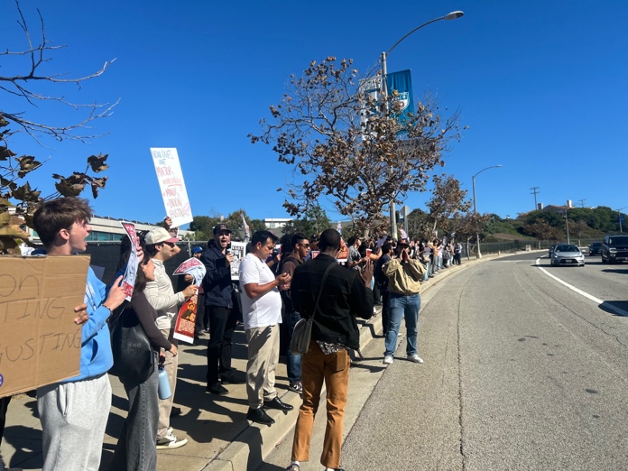 The students and supporters then marched to the main entrance of campus at Lincoln Blvd. and LMU Drive, chanting and rallying there, too.