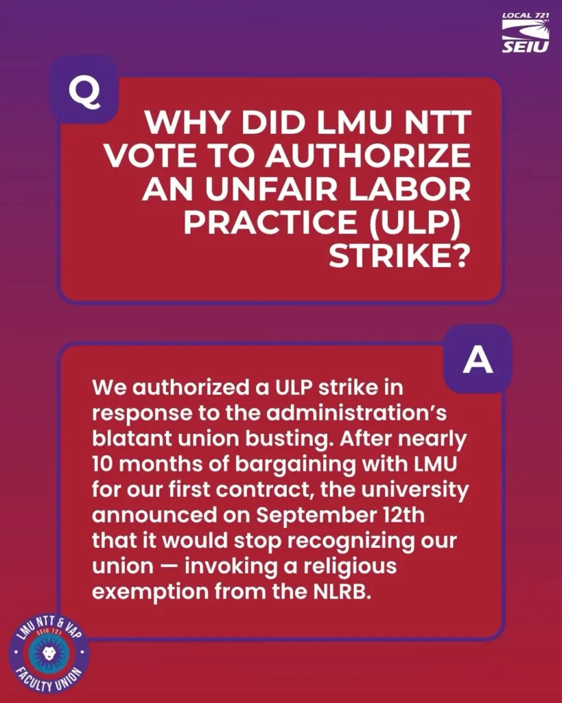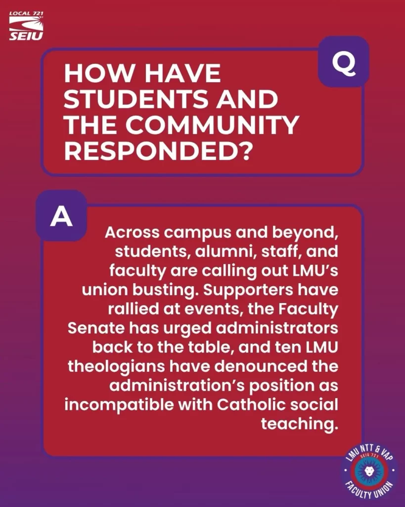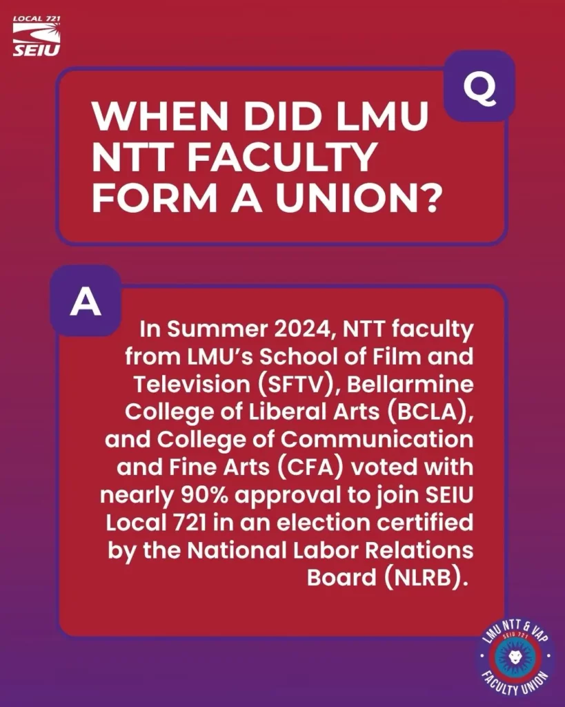 LMU wants you to think “the union” is some outside force. But the truth? WE are the union — the NTT faculty who teach, mentor, and make LMU run. When the administration says they won’t recognize the union, what they’re saying is they won’t recognize us.
