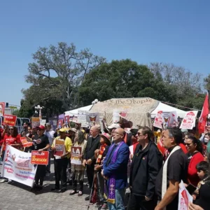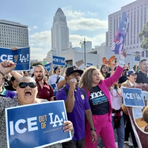 Against the backdrop of a massive replica of the Declaration of Independence, members of SEIU 721 joined forces with other labor unions, immigration activists, local faith leaders, artists and people affected by ICE raids to launch the “Summer of Resistance” at La Placita Olvera in downtown LA today. The lively … Read More
