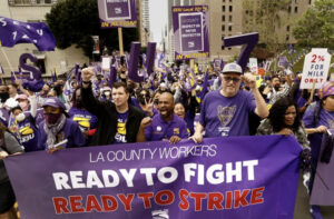 Leaders of Service Employees International Union 721, which organized the strike that began Monday, said the workers are protesting LA County’s delay in negotiating a new contract as well as 44 alleged violations they say accumulated during the current bargaining cycle.