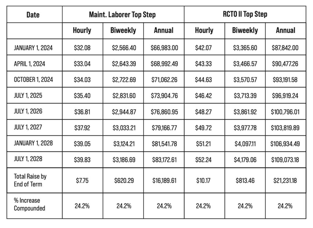 Thanks to our organizing and action, here’s the city’s new salary schedule for MOU 4 Maintenance Laborers and Refuse Collection Truck Operator II