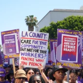 Picket signs saying ULP Strike Ready LA County ULP Strike Rally and March Sign Up – April 29 - Enough is enough! For the first time in history, all LA County SEIU 721 members will be walking out on a ULP strike to protest the county’s rampant labor law violations and failure to bargain in good faith. The ULP strike will begin on Monday, April 28th at 7pm and will … Read More