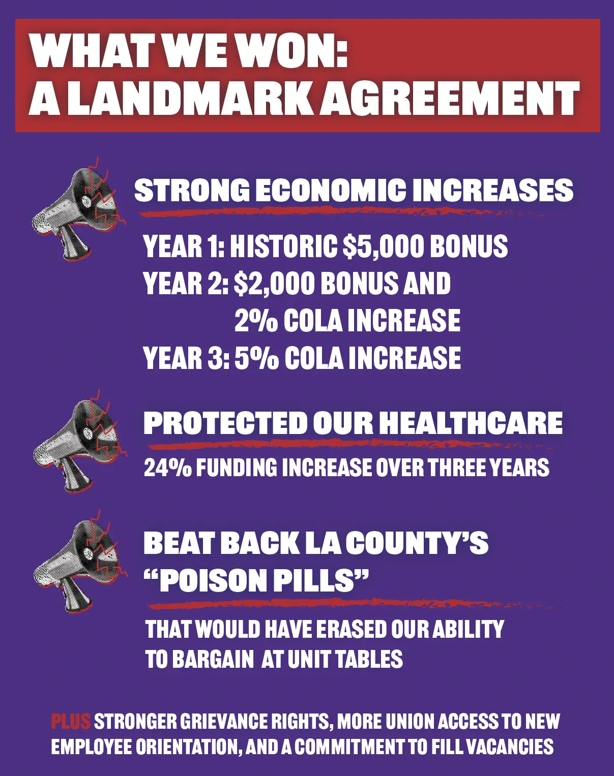 Our unity built the momentum needed to win a strong contract every LA County worker can be proud of. While layoffs, pay cuts, and rising costs are hitting workers everywhere, we secured real victories that will make a difference for all of us.