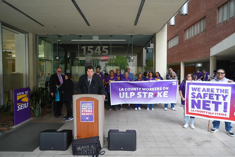 LOS ANGELES – Fed up with Los Angeles County management’s repeated law-breaking and failure to bargain in good faith, members of labor union SEIU 721 earlier today held a press conference and rally delivering a 10-Day Unfair Labor Practice (ULP) Strike Notice to the county. The ULP Strike will directly impact more than 55,000 LA employees represented by SEIU 721 as well as nearly 10 million county residents.