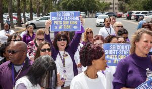 Hundreds of San Bernardino County professionals and several community leaders gathered at lunchtime on April 28th to protest short-staffing in county departments and to show support for their bargaining team, which has been at the table since last August trying to win a fair contract that will deal with high caseloads and workloads.