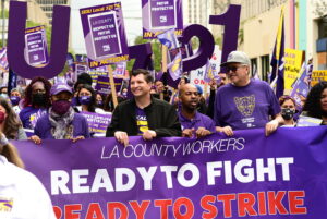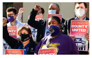 Outraged by Los Angeles County management’s continued slow-rolling of the contract bargaining process, hundreds of our LA County members joined our clergy allies at today’s Board of Supervisors meeting to pack the chambers and shut it down. Today’s action culminated with the arrest of six union members and clergy allies
