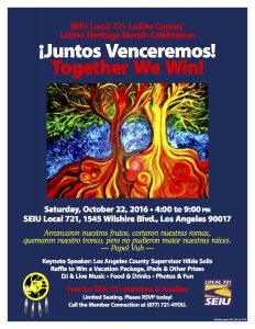 Join SEIU 721 members for a special evening to recognize community leaders and honor elected officials who stand with workers at the Latino Caucus’ “An Evening Under the Stars” celebration on September 20, 2014.