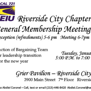 As we enter the new year, the SEIU 721 City of Riverside chapter General and Refuse units are ready to enter in negotiations for a new contract. Nominations are in, and ballots have been mailed to members’ homes.