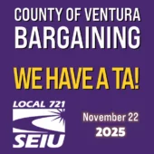 We did it! Thanks to our tireless dedication at the negotiation table and in the field, our SEIU 721 County of Ventura bargaining team delivered on a strong Tentative Agreement (TA). The agreement provides historic gains that uplift members, our families and our communities. An overwhelming majority of the … Read More - County of Ventura Bargaining Update #11 November 17 2025