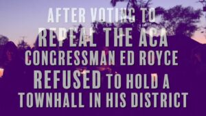 Congressman Ed Royce is hiding from his constituents. He voted to gut the country’s healthcare system without having a better